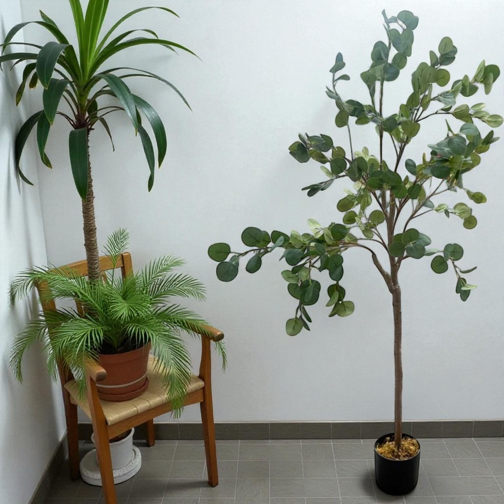 Bring the beauty of nature indoors with this Artificial Green Plant (Eucalyptus) in Black Pot. Crafted with realistic foliage and detailed stems, it offers the charm of a living plant without the need for water, sunlight, or upkeep.Ideal Size: As a compact floor or tabletop plant, it is perfect for small apartments, desks, shelves, or as an accent piece in any room.