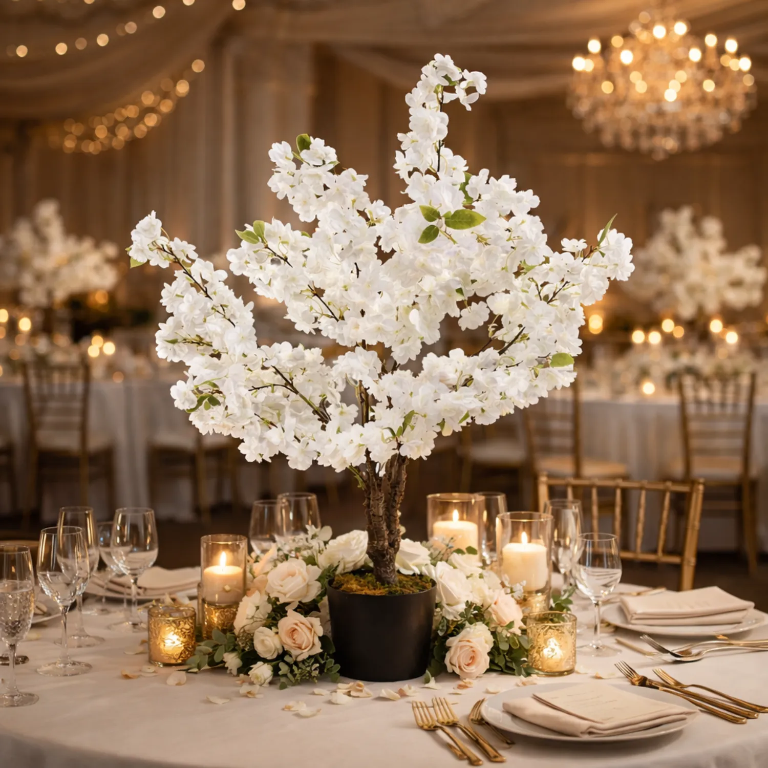 Whether for special events or everyday décor, this White Blossom Tree delivers visual impact with ease. For example, it works beautifully for weddings, receptions, and upscale events. It can frame entrances, ceremony aisles, or photo backdrops.