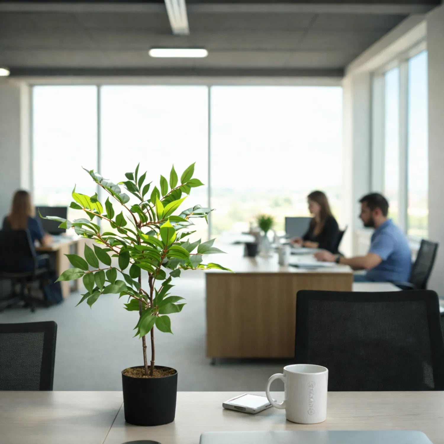 Bring the beauty of nature indoors with this Artificial Green Plant (Ficus) in Black Pot. Crafted with realistic foliage and detailed stems, it offers the charm of a living plant without the need for water, sunlight, or upkeep.Ideal Size: As a compact floor or tabletop plant, it is perfect for small apartments, desks, shelves, or as an accent piece in any room.