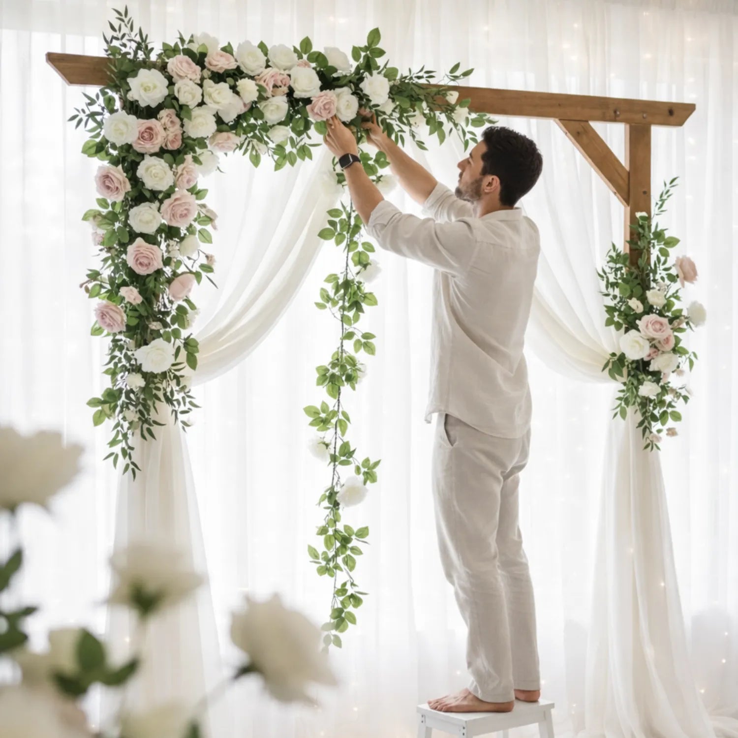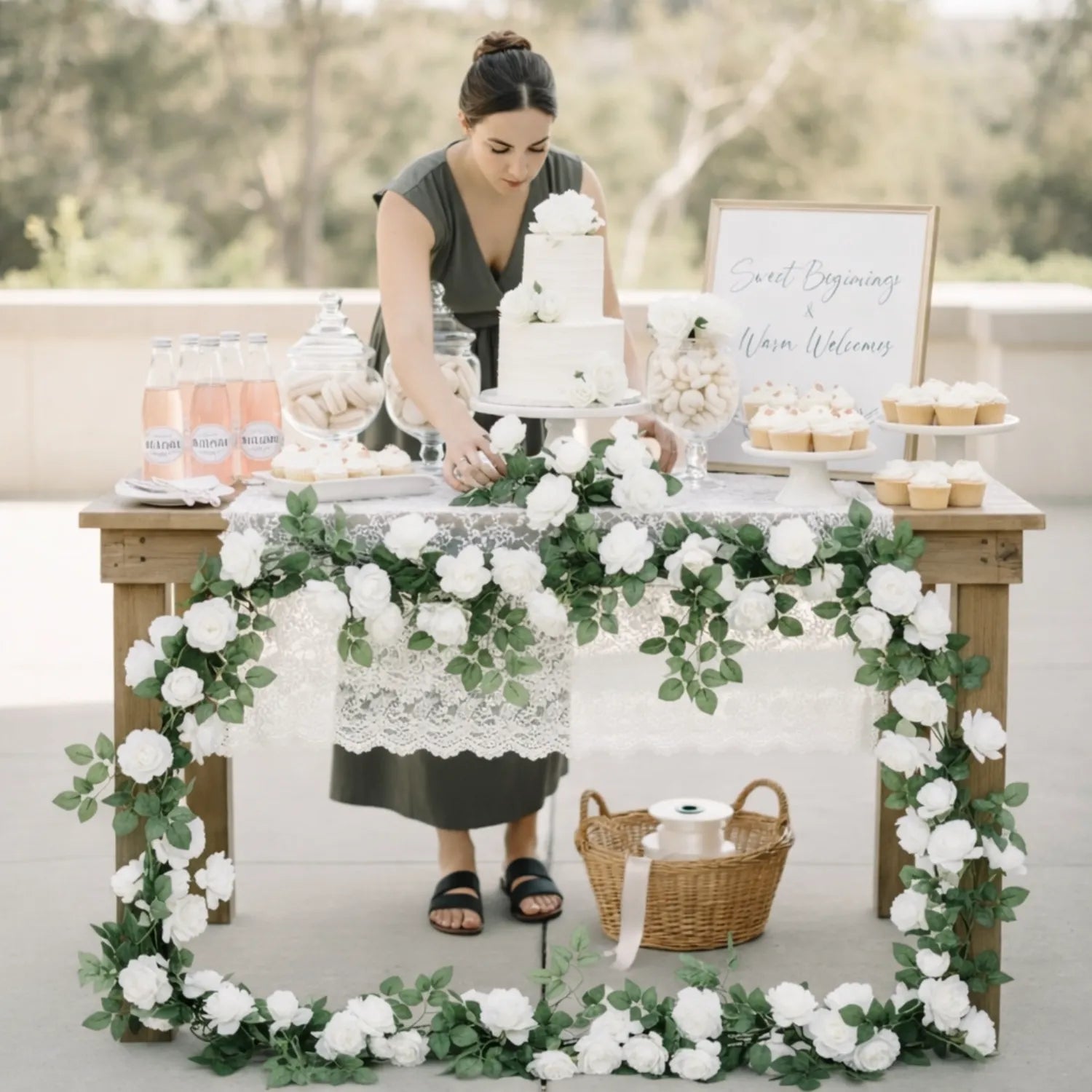 This rose garland is the perfect accent piece for living rooms, weddings, offices, or gifts – adding a timeless floral touch wherever you place it. ✨